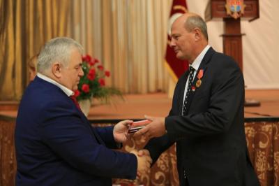 На торжественном мероприятии состоялось награждение. Под аплодисменты, Казбек Тайсаев наградил Памятным орденом «100 лет ВЛКСМ» Председателя ЦК ПКРМ Владимира Николаевича Воронина, члена Президиума ЦК КПУ Крючкова Георгия Корнеевича, в этот день ему исполнилось 89 лет, также вручил памятные партийные награды партийному активу, тем кто стоял у истоков партии, тем кто принимает активное участие в жизни партии.