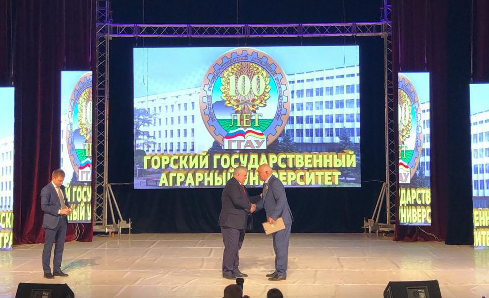 По завершении приветствия, за добросовестный труд, значительный вклад в развитие кадрового потенциала агропромышленного комплекса Российской Федерации и в связи со 100-летием со дня открытия университета, Казбек Тайсаев от имени Заместителя Председателя ЦК КПРФ, академика РАН, председателя комитета Государственной Думы по аграрным вопросам Владимира Ивановича Кашина передал почетную грамоту коллективу Горского государственного аграрного университета и наградил высшей партийной наградой «Орденом дружбы» ректора университета Темираева Виктора Хамицевича. Также была вручена высшая награда Международного организационного комитета «Комсомолу -100» орден «Комсомольская доблесть» Ваниеву Асланбеку Георгиевичу, Донской Наталье Петровне, Лазарову Таймуразу Константиновичу.