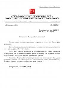 Центральный Совет СКП-КПСС поздравляет с Днем рождения Первого секретаря ЦК Компартии Казахстана Т.С. Махыжанова. Публикуем текст поздравления.