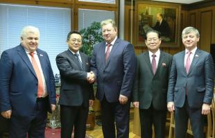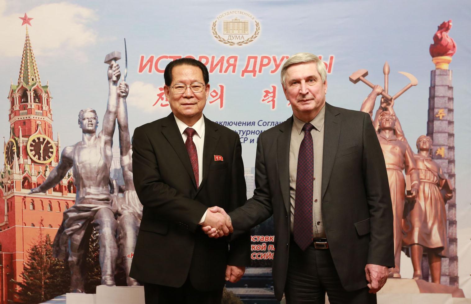 Встречал гостей секретарь ЦК КПРФ, Первый заместитель Председателя ЦС СКП-КПСС, член Комитета Государственной Думы по делам СНГ, евразийской интеграции и связям с соотечественниками, координатор депутатской группы Государственной Думы по связям с Парламентом КНДР Казбек Куцукович Тайсаев. Далее делегацию принял заместитель Председателя ЦК КПРФ, академик РАН, Председатель Комитета Госдумы по аграрным вопросам Владимир Иванович Кашин. Также в рабочей встрече с делегацией КНДР участвовал заместитель Председателя ЦК КПРФ, Первый заместитель Председателя Комитета по международным делам Дмитрий Георгиевич Новиков.