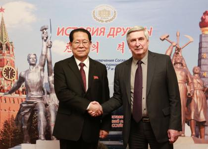 5 марта в Государственную Думу на открытие выставки «История дружбы» прибыла делегация представителей Корейской Народной Демократической Республики. Глава делегации - заместитель заведующего Международным отделом ЦК ТПК Хан Ман Хек. В составе делегации также заместитель начальника сектора по России Международного отдела Сон Гван Су. В торжественной церемонии приняли участие Чрезвычайный и Полномочный Посол КНДР в России Ким Хен Джун, сотрудники посольства.