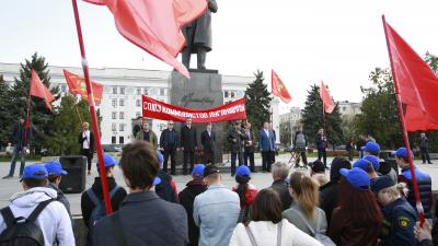 В заключении, коммунисты возложили цветы к подножию памятника Владимира Ленина.