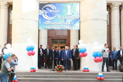 Поздравить студентов с началом учебного года приехали почетные гости: Секретарь ЦК КПРФ, Первый заместитель Председателя ЦС СКП-КПСС, член Комитета ГД по делам СНГ, евразийской интеграции и связям с соотечественниками Казбек Куцукович Тайсаев, Первый заместитель председателя правления ГК «Автодор» Астахов Игорь Георгиевич, Заместитель министра транспорта и дорожной инфраструктуры Московской области Иванов Святослав Юрьевич, Заместитель руководителя Центра организации дорожного движения Правительства Москвы Горшков Дмитрий Алексеевич, Заместитель директора ФКУ «Росдормониторинг» Закурдаев Евгений Николаевич. К поздравлениям присоединились члены Ученого Совета и ректората во главе с и.о. ректора МАДИ, профессором Кустаревым Геннадием Владимировичем ректорат, деканы университета.