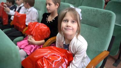 попечения родителей детям также были вручены подарки в красивых красных пакетах