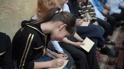 Дети оживились и буквально выстроились в очередь, чтобы им был приколот этот бантик.