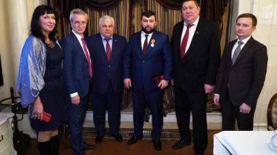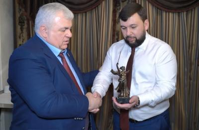 рабочего визита состоялась встреча с главой ДНР Денисом Пушилиным. Ему вручили