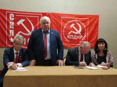 Представителям КПДНР, а также общественным и политическим деятелям ДНР были вручены награды ЦК КПРФ по случаю 140-летия со дня рождения Иосифа Сталина. В свою очередь Борис Литвинов передал российским товарищам марки и конверты с изображением советского вождя.