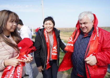 Дагестаном, автоколонну встретила делегация Калмыцкого республиканского отделения КПРФ во главе с секретарями