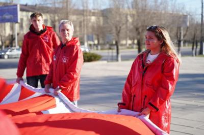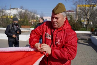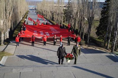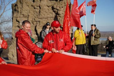 Сталинградского обкома КПРФ Тамарой Головачевой. Развернув гигантскую копию