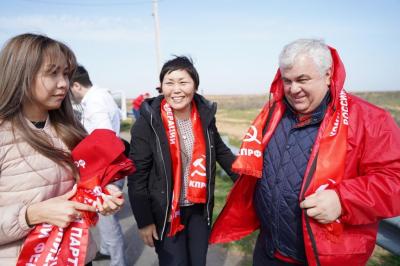 Дагестаном, автоколонну встретила делегация Калмыцкого республиканского отделения КПРФ во главе с секретарями