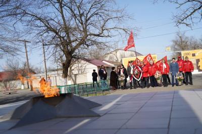 возложили цветы к мемориалу воинской славы, а также у стелы в память о погибших