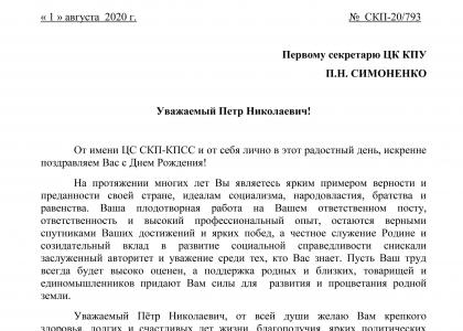 К.К. Тайсаев поздравил с Днем рождения лидера украинских коммунистов Петра Симоненко: