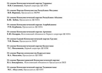 En nombre del Partido Comunista de Tayikistán: M.S. Abdulloev, Presidente del Comité Central del Partido Comunista de Tayikistán