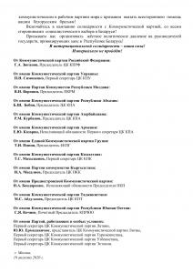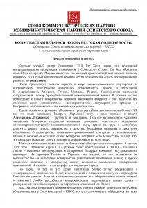 Мы, лидеры семнадцати коммунистических партий бывших советских республик, объединившиеся в Союз компартий – КПСС, в эту трудную минуту обращаемся ко всем коммунистическим и рабочим партиям мира с призывом оказать всестороннюю помощь нашим белорусским братьям!