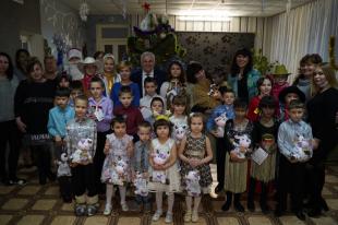 Посетили мы два республиканских специализированных домов ребенка – в Донецке и Макеевке, где воспитываются дети, лишенные родительского попечения в возрасте от месяца до четырех лет. Несмотря на то, что многие из малышей страдают серьезными недугами, они пели, читали стихи, танцевали и буквально затаив дыхание наблюдали за Дедом Морозом, Снегурочкой. А как они радовались нашим подаркам!