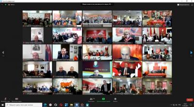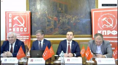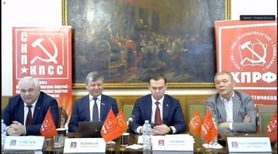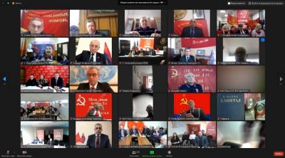 В онлайн-мероприятии приняли участие: Владимир Иванович Кашин - Заместитель Председателя ЦК КПРФ; Юрий Вячеславович Афонин - Заместитель Председателя ЦК КПРФ; Дмитрий Георгиевич Новиков - заместитель Председателя Центрального Совета СКП-КПСС, заместитель Председателя ЦК КПРФ; Леонид Иванович Калашников - Секретарь ЦК КПРФ по международным связям; Казбек Куцукович Тайсаев - первый заместитель Председателя ЦС СКП-КПСС, член Президиума ЦК КПРФ; Адам Иванович Мартынюк – второй секретарь ЦК Коммунистической партии Украины; Алексей Николаевич Сокол – Первый секретарь ЦК Коммунистической партии Беларуси; Владимир Николаевич Воронин - Председатель Партии Коммунистов Республики Молдова; Темур Иосифович Пипия - Председатель ЦК Единой коммунистической партии Грузии; Ерджаник Юрикович Казарян - И.о. Первого секретарь ЦК Коммунистической партии Армении; Рауф Муслимович Курбанов – Председатель ЦК Коммунистической партии Азербайджана; Нарсоу Геннадиевич Ждопуа – заместитель Председателя Коммунистической партии Республики Абхазия; Станислав Яковлевич Кочиев - Председатель Коммунистической партии Республики Южная Осетия; Инал Дмитриевич Уригаев - Первый секретарь Коммунистической партии Республики Южная Осетия; Ырысбек Орманкулович Тойбеков – секретарь ЦК Партии Коммунистов Кыргызстана, член ЦС МСКО–ВЛКСМ; Толеубек Сатылханович Махыжанов – член ЦС СКП-КПСС; Василий Иванович Шамин – член ЦС СКП-КПСС; Полат Жумамуратович Реймов - Представитель Коммунистической партии Узбекистана; Коммунистическая партия Донецкой Народной Республики, Коммунистическая партия Луганской Народной Республики; Игорь Николаевич Макаров – заместитель Председателя Центрального Совета СКП-КПСС, член ЦК КПРФ; Юозас Юозович Ермалавичюс - Заместитель председателя Центрального Совета СКП-КПСС; Ильгам Исабекович Гаписов – Секретарь Центрального Совета СКП-КПСС, Председатель Исполкома МСКО-ВЛКСМ; Владимир Павлович Исаков - первый секретарь ЦК ЛКСМ РФ.