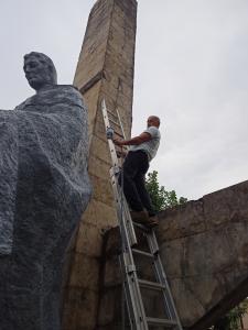 Монумент был тщательно почищен от налетов пыли и грибковых зарослов, покрыт специальной защитной грунтовкой и покрашен, а также возле памятника установили ночное освещение. Фактически он был спасен от дальнейшей эрозии. Теперь не только уроженцы города, но и множество проезжающих, в том числе и туристов, смогут полюбоваться на освеженный вид впечатляющего монумента!