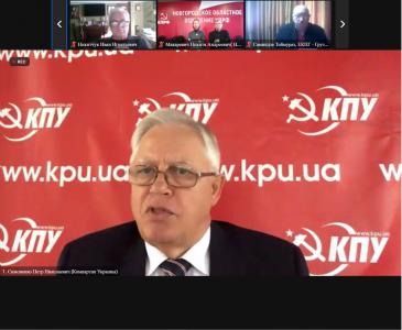 Далее Первый секретарь Компартии Украины Пётр Николаевич Симоненко поздравил КПРФ с полученными результатами, выразил солидарность с борьбой коммунистов за мандаты, также проинформировал о внутренней обстановке на Украине. Он отметил, что сегодняшний украинский режим имеет признаки фашистского с использованием террористических методов управления. Кроме того, Пётр Николаевич призвал придать новое политическое звучание социалистическому учению, исходя из современных условий.