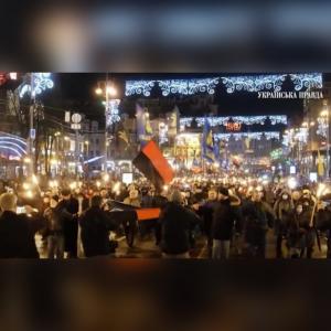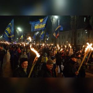 1 января в центре Киева прошло факельное шествие украинских националистов по случаю дня рождения Степана Бандеры. Участники размахивали флагами националистических организаций и выкрикивали лозунги в поддержку нацистского коллаборациониста. Оно началось около 17:50 в парке имени Тараса Шевченко и закончилось в 19:10 возле Офиса президента.