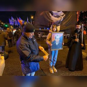Митингующие несли зажжённые факелы и размахивали флагами "Правого сектора" и других украинских радикальных националистических организаций, громко скандируя лозунги в поддержку Бандеры. Кроме почтения Степана Бандеры, участники марша намереваются просить у властей объявить Героем Украины последнего сотника УПА Мирослава Симчича, которому в этом году исполнится 99 лет.