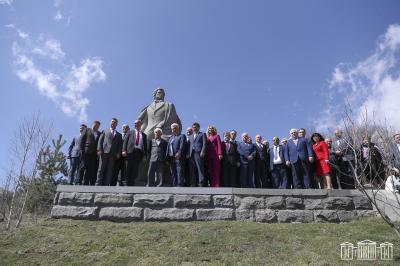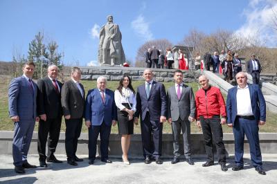 Далее делегация приняла участие в торжественном открытии памятника А.С. Пушкину на Пушкинском перевале. Александр Пушкин ехал из Армении в Карс – там он встретил по дороге арбу с телом убитого в Тегеране Александра Грибоедова. На вопрос Пушкина кого везут, последовал незамедлительный ответ: "Грибоеда". Этот случай позже был описан в произведении «Путешествие Пушкина в Арзрум». Впоследствии именно здесь в советские времена и был открыт Музей имени Александра Сергеевича Пушкина, а в 1937 году скульптором Смбатом Саркисяном и архитектором Георгием Мурзой построен бронзовый барельеф, на котором изображена легендарная и последняя встреча двух гениев русской литературы. Высота Пушкинского перевала 2030 м – с него открываются потрясающие виды на Армению. Наконец, на этой исторической земле исполнилась мечта двух братских народов – под знаменитый Грибоедовский вальс состоялось открытие памятника Александру Сергеевичу Пушкину, который хотели установить еще в 70-е годы, но обрел свое место лишь спустя 45 лет, как символ дружбы России и Армении.