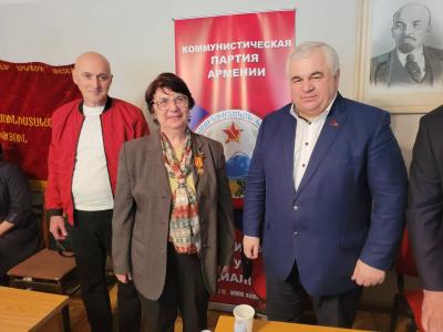 Кроме того, состоялась встреча с партийным активом Коммунистической партии Армении. В начале встречи Казбек Тайсаев передал слова приветствия всем присутствующим от Лидера КПРФ и СКП-КПСС Геннадия Андреевича Зюганова.