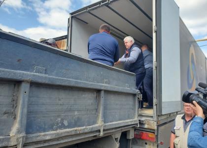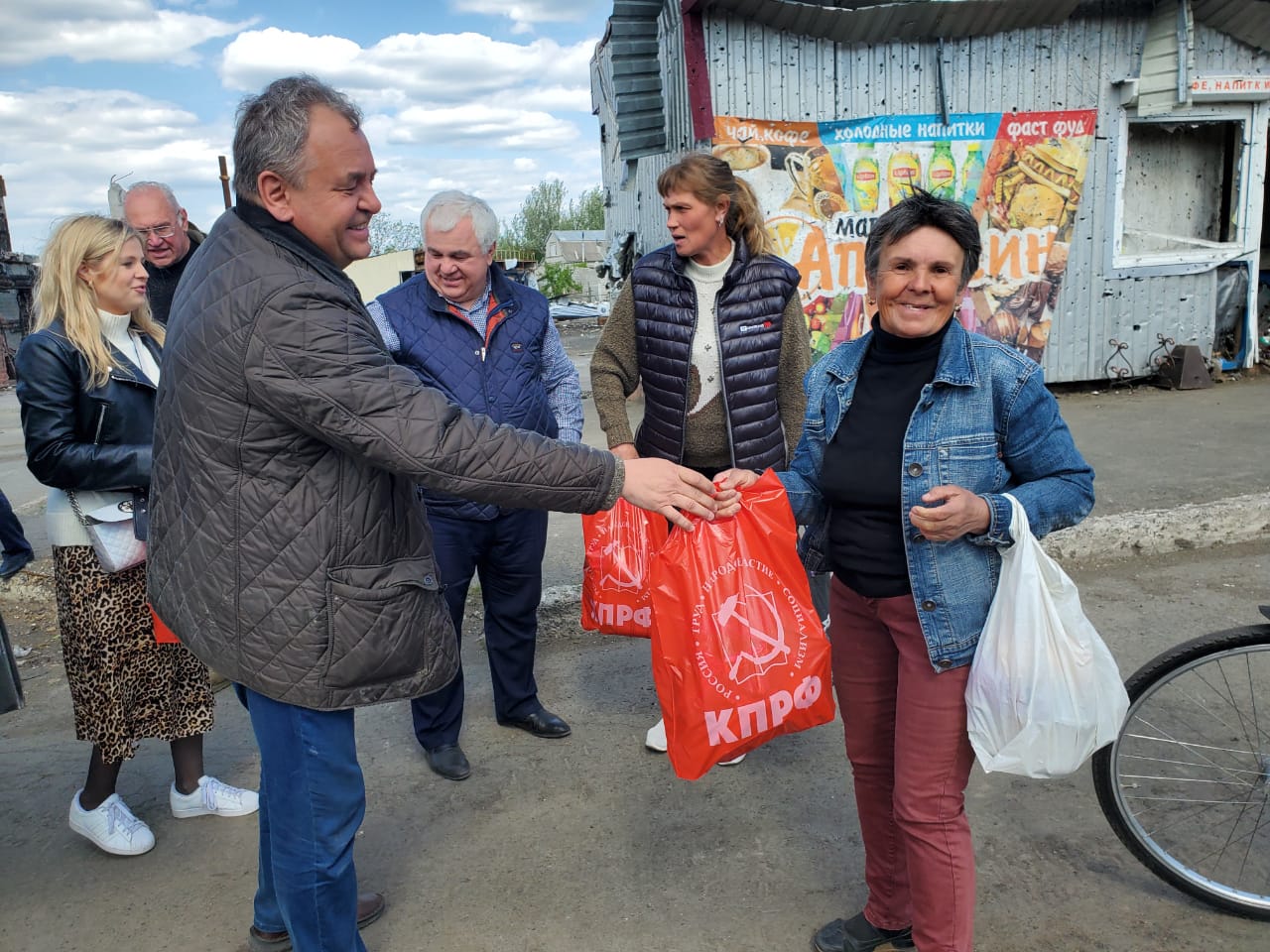 Также утром делегация в здании партийной организации СКП-КПСС встретила машину гуманитарного груза, прибывшую прямиком из Москвы. Жителям Донбасса доставили различные продукты питания: бакалею, мясные и рыбные консервы, сладости и многое другое. Часть гуманитарной помощи была направлена в Волноваху, в которой делегации удалось побывать накануне и воочию лицезреть масштаб разрушений. Представители администрации Волновахи сердечно поблагодарили делегацию за предоставленную помощь, а также рассказали подробнее о тех испытаниях, которые пришлось преодолеть жителям города, о задачах, стоящих на сегодняшний день перед руководством Волновахи, и, конечно, о нуждах населения. На сегодняшний день ключевым вопросом является восстановление инфраструктуры. По оценкам властей, в результате агрессии со стороны ВСУ разрушено до 85% жилого фонда города. Особую благодарность руководство выразило сотрудникам МЧС, которые оперативно прибыли в Волноваху с целью разбора завалов.