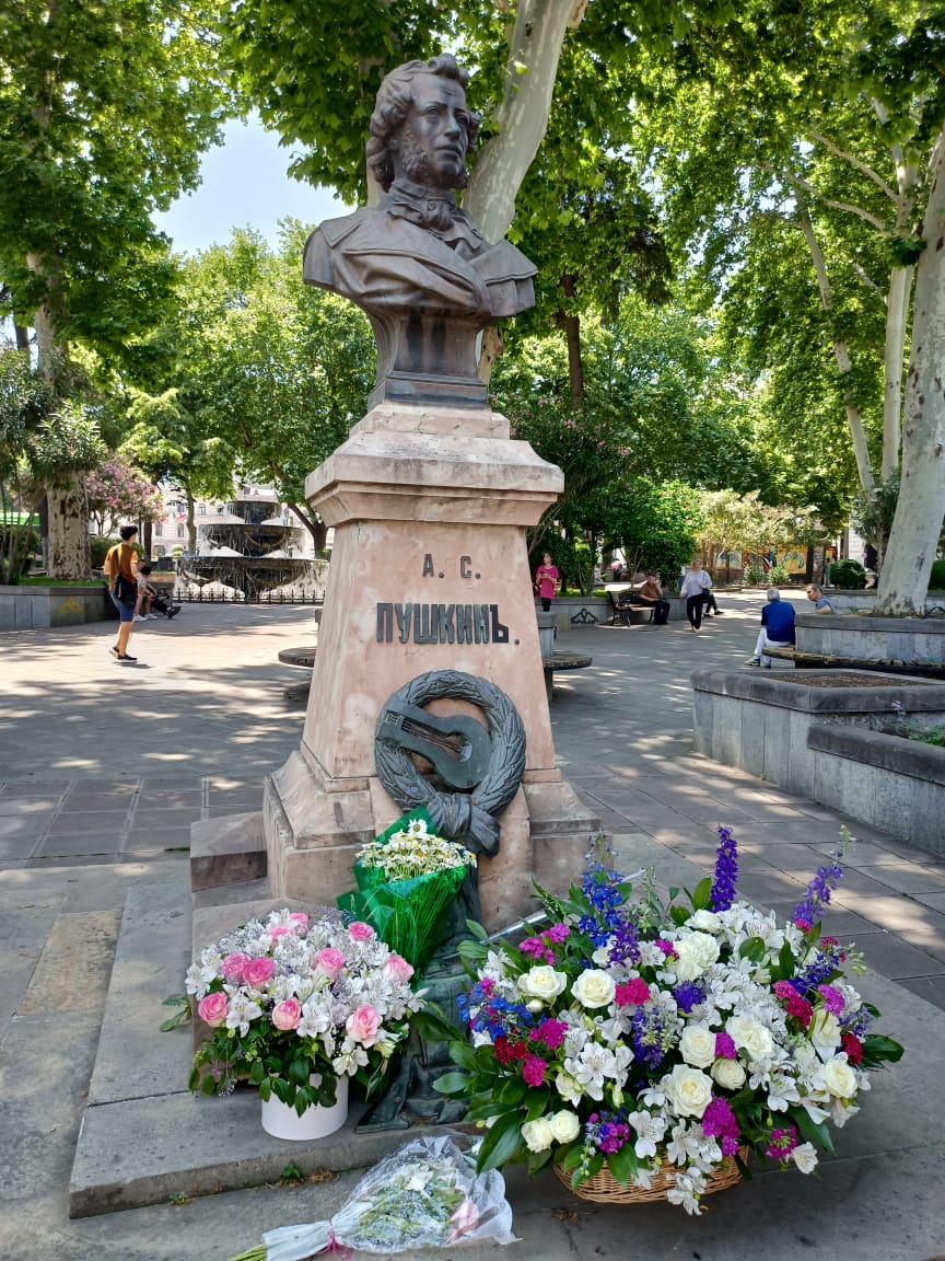 Но и Тифлис не забывал о великом русском госте. 25 мая 1892 года газета "Иверия" писала: "В день благословения памятника к Пушкинскому скверу устремилась огромная масса людей. Люди заполнили балконы, окна, крыши близлежащих домов. Пушкинский сад был украшен знаменами. Дом, где в 1829 году в течение двух недель жил Пушкин, был украшен гирляндами цветов и флагами".