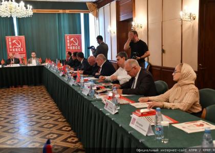«Я от души вас приветствую и благодарю, что вы дружно собрались на наше заседание, - сказал лидер российских коммунистов. - Сегодня в заседании Исполкома участвуют лидеры Компартии Республики Абхазия, Компартии Армении, Компартии Беларуси, Единой Компартии Грузии, Компартии Кыргызстана, Компартии Российской Федерации, Компартии Украины, Компартии Таджикистана. С нами также наши боевые друзья и соратники из Донецкой и Луганской Народных Республик. В заседании принимает участие Чрезвычайный и Полномочный Посол Корейской Народно-Демократической Республики в Российской Федерации товарищ Син Хон Чхоль. И я хотел бы всех вас еще раз поприветствовать и пожелать успехов!»