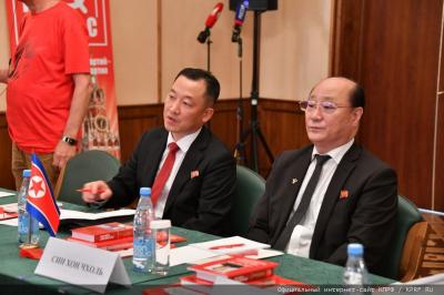 «Я от души вас приветствую и благодарю, что вы дружно собрались на наше заседание, - сказал лидер российских коммунистов. - Сегодня в заседании Исполкома участвуют лидеры Компартии Республики Абхазия, Компартии Армении, Компартии Беларуси, Единой Компартии Грузии, Компартии Кыргызстана, Компартии Российской Федерации, Компартии Украины, Компартии Таджикистана. С нами также наши боевые друзья и соратники из Донецкой и Луганской Народных Республик. В заседании принимает участие Чрезвычайный и Полномочный Посол Корейской Народно-Демократической Республики в Российской Федерации товарищ Син Хон Чхоль. И я хотел бы всех вас еще раз поприветствовать и пожелать успехов!»