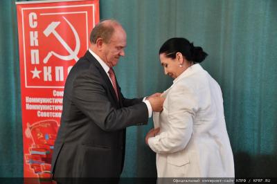 Затем состоялось вручение юбилейных памятных медалей ЦК КПРФ, посвященных 100-летию СССР. Ими были награждены: