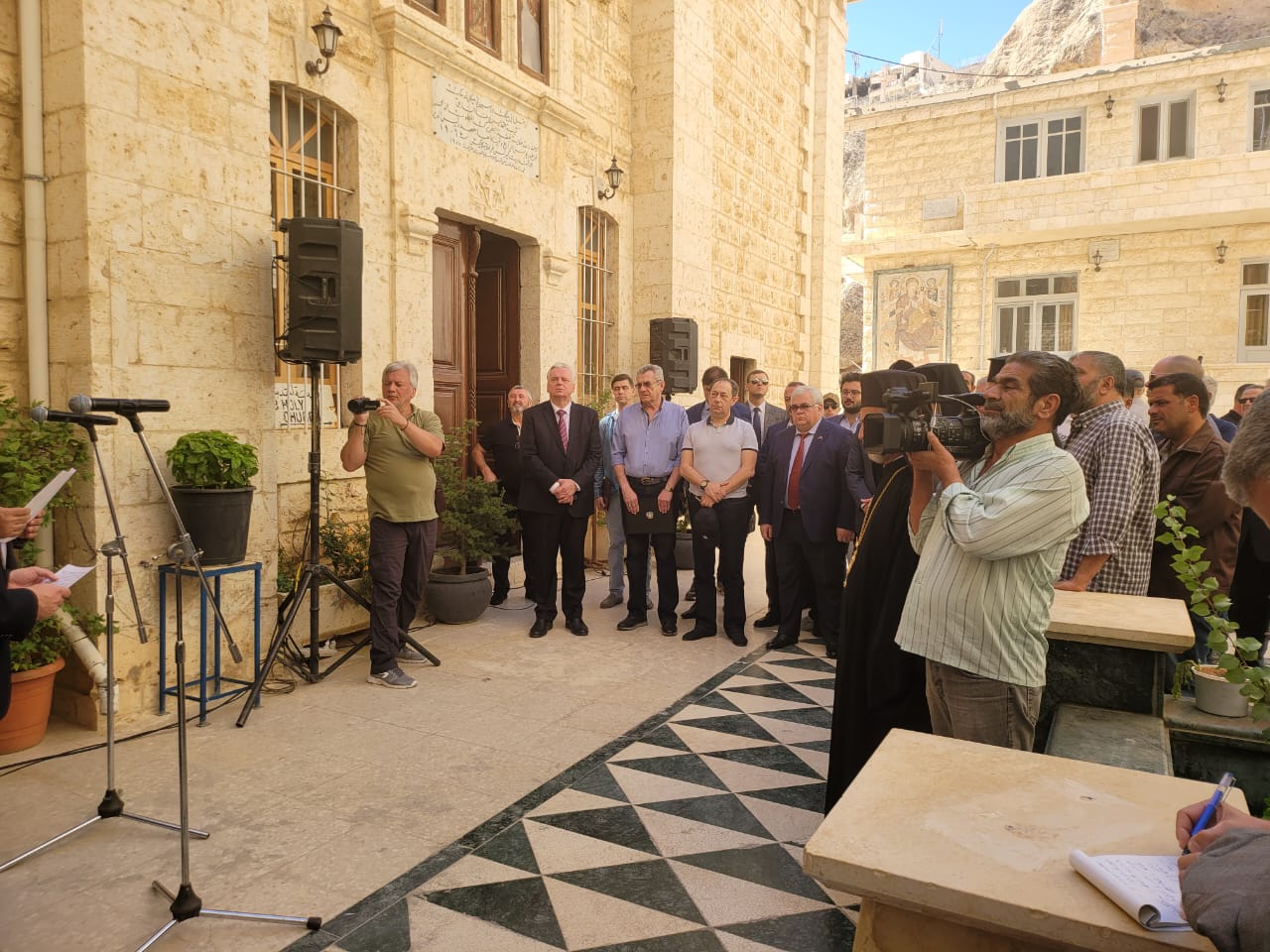 Секретарь ЦК КПРФ, Первый заместитель Председателя ЦС СКП-КПСС, Первый заместитель председателя Комитета Государственной Думы по делам СНГ, евразийской интеграции и связям с соотечественниками Казбек Куцукович Тайсаев: Мы не впервые посещаем этот город и монастырь. Каждый раз поражает красота и необычайная энергетика этого места. Во время войны монастырь Святой Фёклы в Сирийской Маалуле получил серьёзные разрушения и был разграблен. Сохранились только мощи Святой Фёклы и удивительное абрикосовое дерево, выросшее прямо из скалы. На сегодняшний день усилиями России монастырь был восстановлен. Он, как и впредь, открыт для посетителей.