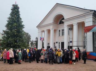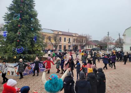 Возле Дома культуры прошло праздничное мероприятие. Для детей Старобельского района зажгли новогоднюю ёлку и выступили Дед Мороз со Снегурочкой.