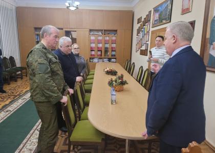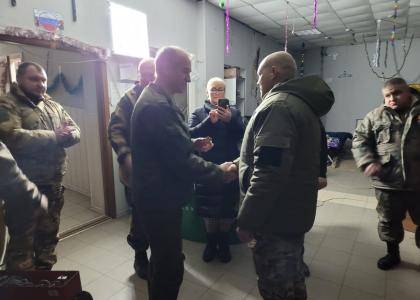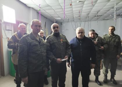 Встретились к командирами и бойцами воюющих подразделений. Передали им медикаменты и вручили награды, посвященные 100-летию со дня образования СССР.