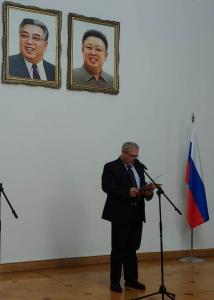 В своём вступительном слове чрезвычайный и полномочный посол КНДР в РФ товарищ Син Хон Чхол отметил непреходящее значение политического наследия Вождя. Провокационные вылазки США и их марионеток из Южной Кореи вновь привели военно-политическую ситуацию в Тихоокеанском регионе к взрывоопасной черте. Но как грозный утёс стоит на пути поджигателей войны любимое детище Ким Ир Сена – свободная, независимая народная Корея.