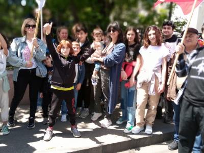 Акция была проведена в парке Киквидзе, шествие закончилось митингом у памятника Герою Советского Союза Кантария Мелитона Варламовича, водрузившего Знамя Победы над Рейхстагом вместе с русским Егоровым. Участники митинга приняли заявление, где поддержали мирную политику правительства Грузии.