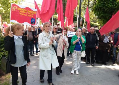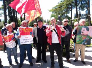 Кроме того, празднующие люди принесли антинатовские и антифашистские плакаты, а также баннер против нацизма на Украине. 9 мая Единая Компартия Грузии отметила День Победы шествием и митингом в столице Грузии Тбилиси.