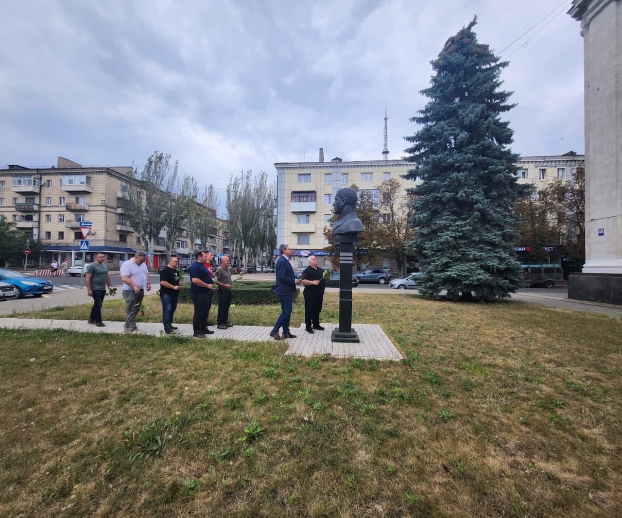 Возложили цветы к бюсту первого Главы ЛНР Валерия Дмитриевича Болотова. Он стоял у истоков создания Луганской Народной Республики, фактически он стал создателем вооруженных сил республики, сплотив воедино отряды самообороны. Это тот человек, который встал на защиту русского мира. Сняв балаклаву, с открытым лицом, с открытым сердцем пошел против врагов. Кроме того, Валерий Дмитриевич был коммунист, партийный билет члена КПРФ ему вручал Г.А. Зюганов, на митинге посвященному Дню Победы 9 мая в Москве.