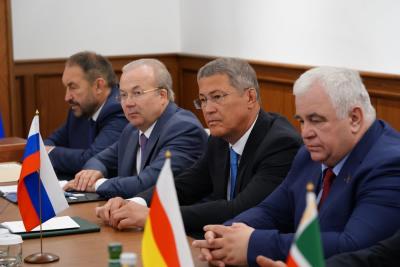 После военного парада Казбек Куцукович встретился с Президентом Республики Абхазия Асланом Георгиевичем Бжания. На встрече присутствовали представители делегаций Южной и Северной Осетии, Башкортостана, Ленинградской области, Кабардино-Балкарии, Карачаево-Черкесии, Адыгеи, Приднестровско- Молдавской Республики. Глава государства поблагодарил присутствующих за участие в праздничных мероприятиях.
