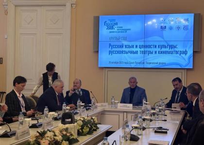Далее приняли участие в Круглом столе «Русский язык и ценности культуры: русскоязычные театры и кинематограф».