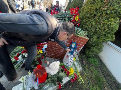 По всему миру над посольствами России приспущен государственный флаг. А рядом продолжают расти народные мемориалы из цветов, игрушек, зажженных свечей и записок со словами сочувствия, и поддержки. Наши соотечественники и граждане других стран скорбят вместе с Россией, переживая эту страшную трагедию, как свою.