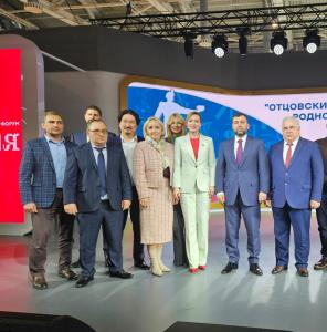 11 мая 2024 г. делегация из Государственной Думы РФ в составе: Секретаря ЦК КПРФ, Первого заместителе Председателя Центрального Совета СКП-КПСС, Первого заместителя Председателя Комитета ГД по делам СНГ, евразийской интеграции и связям с соотечественниками Казбека Куцуковича Тайсаева, заместителя Председателя НС ДНР Сытова Николая Олеговича, депутата Народного Совета ДНР Юлия Якубовича Якубова, депутата Ясиноватского муниципального совета Артура Хушиновича Баликоева, депутата Докучаевского муниципального совета Шамиля Анзоровича Лорсанова, заместителя заведующего отдела ЦК КПРФ по национальной политике, заместителя редактора политического журнала «Персона страны» Ахмаевой Марины Бексултановны, помощника депутата Государственной Думы РФ Софии Мерабовны Чачии, руководителя БАНО «Зов сердца» Артема Александровича Девятовского, по приглашению Главы Донецкой Народной Республики Дениса Владимировича Пушилина посетили мероприятие по случаю 10-й годовщины образования ДНР, которое состоялось на международной выставке-форуме «Россия» в Москве.