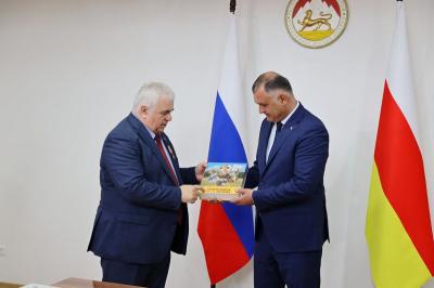 Во встрече также приняли участие Председатель Парламента Республики Южная Осетия Алан Маргиев, Руководитель Администрации Президента РЮО Алан Алборов, Заместитель Председателя Парламента Таймураз Тадтаев и депутат Парламента Республики Северная Осетия — Алания Чермен Дудати.
