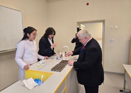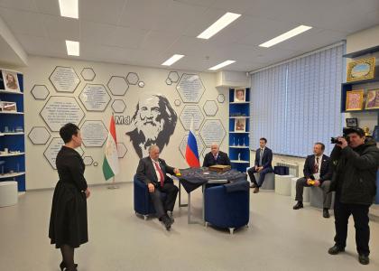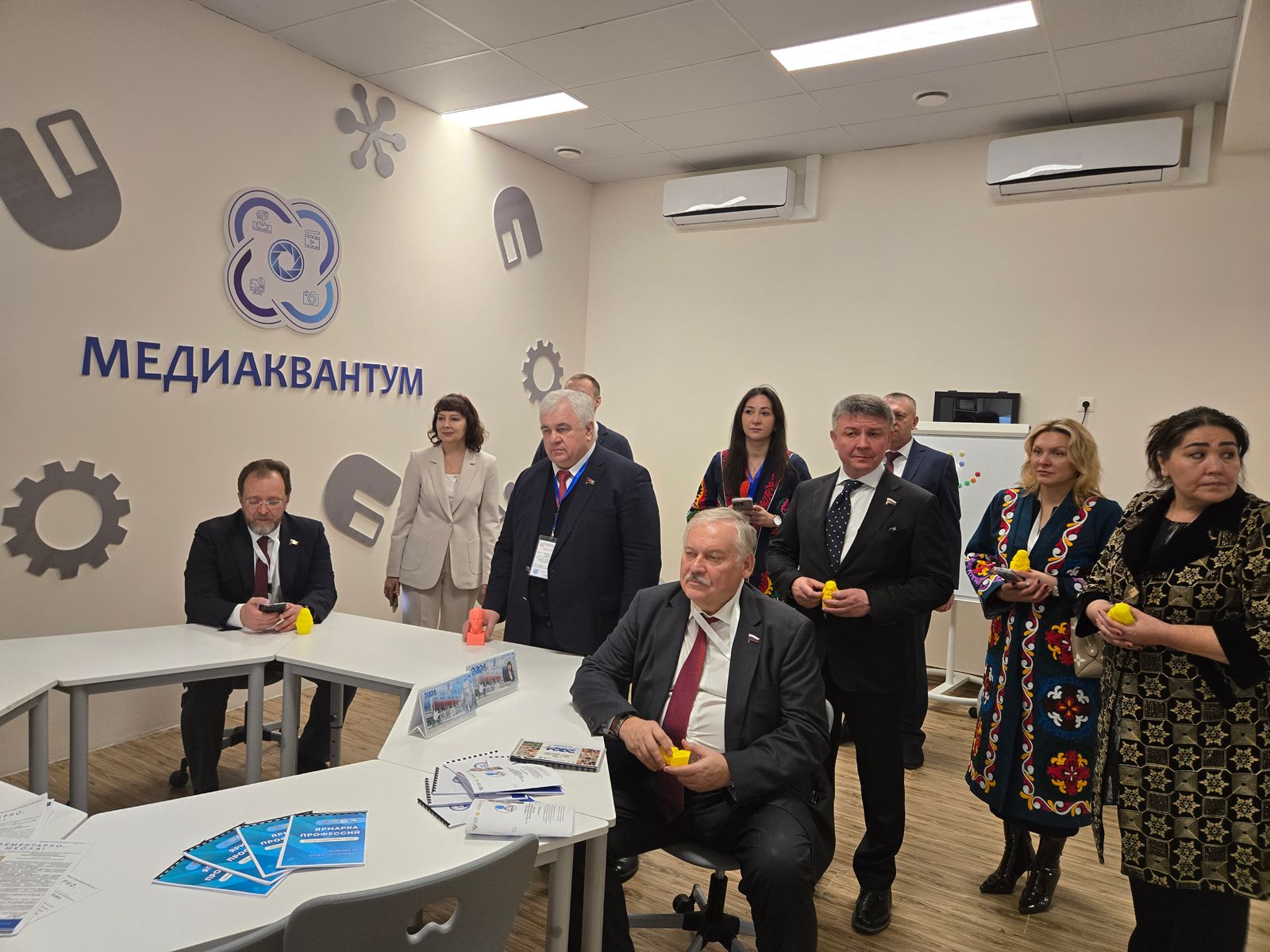 Делегация посетила «Кванториум», где гостям рассказали о достижениях, изобретениях и вручили памятные подарки — бюсты Менделеева, созданные на 3D-принтере. Биологическая лаборатория удивила гостей новыми косметическими экспериментами. Вместе с учениками Российско-Таджикской школы Казбек Тайсаев принял участие в посадке семян цветов.