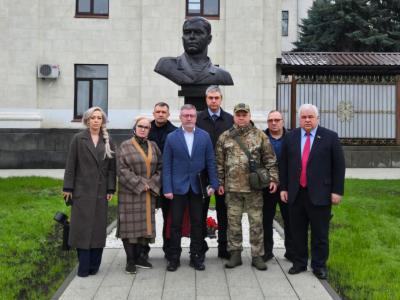 Утром возложили цветы к памятнику-бюсту В.Д. Болотова, первого Главы Луганской Народной Республики. Валерия Дмитриевича связывала с Казбеком Куцуковичем давняя крепкая дружба… При Валерии Дмитриевиче Болотове закладывались основы государственной системы Республики, под своим руководством он сплотил под отряды самообороны и фактически стал создателем Вооруженных сил ЛНР. После ухода с поста Главы Республики Валерий Дмитриевич вступил в КПРФ и продолжал активно оказывать всестороннюю помощь своим землякам.. Его беззаветная преданность Родине и делу служения народу, героизм и мужество навсегда вписаны в историю.