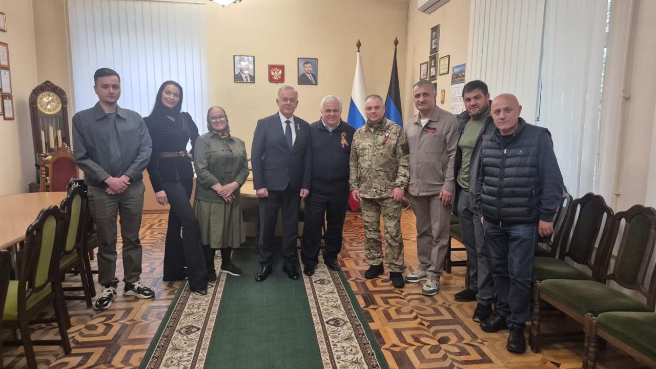 В начале своего рабочего визита делегация КПРФ посетила подразделение «Ветераны». Казбек Тайсаев передал бойцам теплые слова от лидера КПРФ Геннадия Зюганова и вручил памятные медали «80 лет Великой Победы» за верность служения Родине.