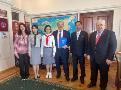 5 июня по приглашению Председателя ЦК КПРФ, Руководителя Фракции КПРФ в Государственной Думе Г.А. Зюганова и секретаря ЦК КПРФ, первого заместителя Председателя Комитета Государственной Думы по делам СНГ К.К. Тайсаева в Москву прибыла делегация из Корейской Народно-Демократической Республики.