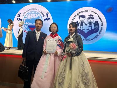 В конкурсе приняла участие и ученица училища при Пхеньянском университете иностранных языков Хван Да Ми, ставшая победительницей в номинации видеоролик «Расскажи миру о своей Родине». Хван Да Ми очень любит русский язык и учит его уже три года. Ученица мечтала о поездке в Россию, чтобы своими глазами увидеть всю красоту нашей уникальной, необъятной страны, и ее мечта сбылась!