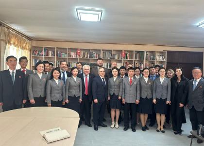 В июне по приглашению Председателя ЦК КПРФ Г.А. Зюганова в Москву прибыла делегация из Пхеньянского института иностранных языков для участия в церемонии награждения победителей Международного конкурса по русскому языку «Расскажи миру о своей Родине». В конкурсе приняла участие ученица Пхеньянского института иностранных языков Хван Да Ми – она была среди тех ребят, чей открытый урок мы посетили в ходе нашего визита в апреле. Хван Да Ми очень любит русский язык и мечтала о поездке в Россию, чтобы своими глазами увидеть всю красоту нашей уникальной, необъятной страны. И её мечта претворилась в жизнь! Визит корейской делегации в Москву получил огромный резонанс в КНДР и дал мощный импульс развитию сотрудничества по линии продвижения русского языка.