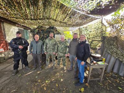 Затем делегация выехала на линию боевого соприкосновения, где Казбек Тайсаев лично вручил бойцам партийные медали «80 лет Великой Победы». Военнослужащим также были переданы приветы от Геннадия Андреевича Зюганова и Владимира Ивановича Кашина.